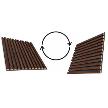 • Ein Paneel hat die Abmessungen 60 x 60 und besteht aus Lamellenleisten aus robuster MDF, die auf einem 8 mm dickem Filz befestigt sind. Aus den Quadratformen lassen sich vielfältige Dekorationen zusammenstellen;