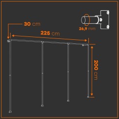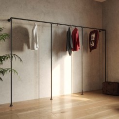 Auf Lager - Versand in 2-5 TagenModell Hannover: Das Walk-In-Triple-Rack mit der Höhe von 200 cm ist in 5 Breiten - 235, 300, 375, 450 und 495 cm erhältlich. Die 2 vertikalen Mittelstangen stabilisieren die gesamte Konstruktion und verhindern das Durchbiegen der Kleiderstange