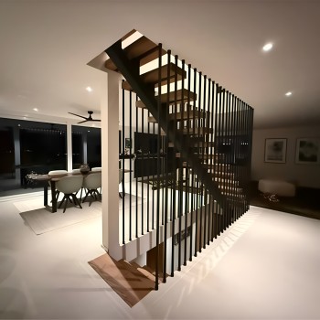 Durch ihr Design verleiht die Harfe der Treppe auch optisch Leichtigkeit, was sich wiederum in einem Gefühl von Geräumigkeit widerspiegelt.