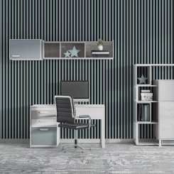 Die Wandverkleidung besteht aus robustem MDF, das Holz imitiert, was eine langfristige Nutzung gewährleistet, bietet hervorragende akustische und thermische Eigenschaften.