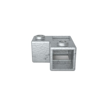 Auf Lager - Versand in 2–9 WerktagenEckstück durchlaufender Ständer - 40 mm. Eckstück-Verbinder (90°). Mit der Option, ein vertikales Rohr rechtwinklig zu verbinden.