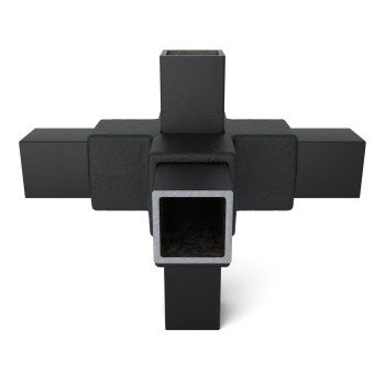 Auf Lager - Versand in 2–9 WerktagenVierfach-Steckkreuz für quadratische Rohre mit 40 mm Querschnitt. Ideal für stabile Kreuzverbindungen. Erhältlich in Silber und Schwarz.
