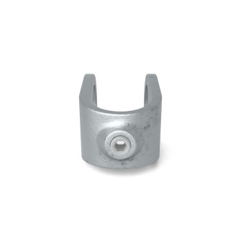 Auf Lager - Versand in 2–9 WerktagenRohrverbinder Kreuzstück offen, Typ 33. 90°-Kreuzverbindungsschelle als Zusatz zu einer bestehenden Konstruktion.Diese Fitting kann durch die offene U-Form um ein Rohr in einer bestehenden Konstruktion gelegt werden. Danach kann ein weiteres Rohr angebracht werden indem dieses durch die zwei Runden Öffnungen geschoben wird. Der Verbinder setzt sich endgültig an der gewünschten Stelle fest, nachdem die Madenschraube an der Hinterseite fest angezogen ist.