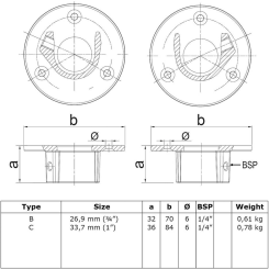 Auf Lager - Versand in 2–9 WerktagenRunde Fußplatte mit Einlage (Satz). Hervorragend geeignet als Stangenhalter. Geliefert als Set (linke und rechte Version). Nachdem Sie die runden Fußplatten platziert haben, können Sie das Rohr einfach hineinstecken. Auch für die temporäre Entfernung eines Durchgangs geeignet, wobei das Rohr einfach und schnell entfernt werden kann.
