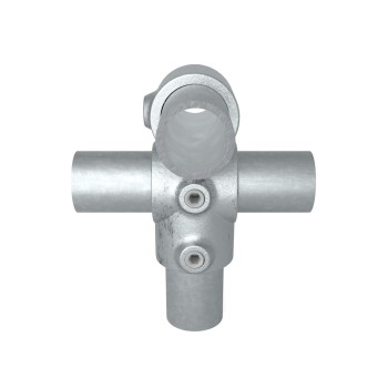 Auf Lager - Versand in 2–9 WerktagenKreuz T-Stück, kombiniert. Wird häufig für Gestängekonstruktionen verwendet. Die Stützenöffnung kann entsprechend dem Anwendungszweck verändert werden. Für Regalgestänge ist die Außenöffnung in der Stütze und für Palettengestelle befindet sich die Stütze im Innern der Tragelemente.