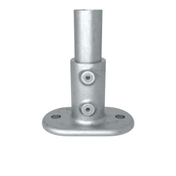 Auf Lager - Versand in 2–9 WerktagenRohrverbinder Fußplatte oval, Typ 12. Starke Grundplatte zur Abstützung vertikaler Pfosten. Vertikale Breitrippen mit zwei Stellschrauben erhöhen die Stärke des Rohrverbinders. Die Befestigungslöcher im Basisflansch sollten mit der angewandten Belastung übereinstimmen.Die Flansche ist an der Unterseite teils offen (zur eventuellen Wasserabfuhr), jedoch soweit geschlossen, dass das Rohr nicht hindurchgeschoben werden kann.