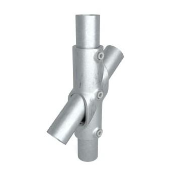 Auf Lager - Versand in 2–9 WerktagenRohrverbinder Kreuzstück für Gefälle 30° - 45°, Typ 23. Dieser Verbinder ist vergleichbar mit dem Typ22S. Dieser variable Winkelklemme ist geeignet für Steigungen zwischen 30° und 45°. Rohrverbinder Typ 7 kann mit diesem Verbinder kombiniert und für den oberen Handlauf verwendet werden.