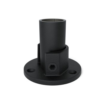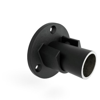 Auf Lager - Versand in 2–9 WerktagenRunde Fußplatte mit Einlage (Satz). Hervorragend geeignet als Stangenhalter. Geliefert als Set (linke und rechte Version). Nachdem Sie die runden Fußplatten platziert haben, können Sie das Rohr einfach hineinstecken. Auch für die temporäre Entfernung eines Durchgangs geeignet, wobei das Rohr einfach und schnell entfernt werden kann. Ein weitere Vorteil der schwarzen Lackierung ist, dass diese tief in das Material eindringt und dem Verbinder ein extra hohes Maß an Korrosionsbeständigkeit verleiht. Die Farbe ist nicht UV-Beständig und daher nicht für den Außeneinsatz geeignet. Die Rohrverbinder sind mit schwarz gefärbtren, rostfreien Stahlschrauben mit Schnittrand versehen.