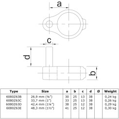 Alle Rohrverbinder sind mit einer Größe gekennzeichnet, die dem jeweiligen Rohrdurchmesser entspricht. Bei Verbindern der Größe D - 42 mm beispielsweise beträgt der Durchmesser des für diesen Verbinder vorgesehenen Rohrs 42 mm. Es ist zu beachten, dass jede Muffe ein gewisses Spiel hat, da das Rohr im Inneren der Muffe mit einer Dockingschraube befestigt ist. Daher wird auch ein minimal kleineres oder größeres Rohr passen.
