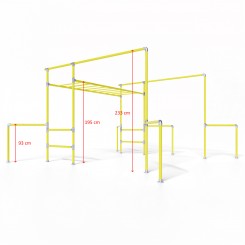 Die 3 m x 900 mm große Stange mit neun Sprossen ist ebenfalls höhenverstellbar, von 1,2 bis 2,3 m und mit Verlängerungen bis zu 3 m.