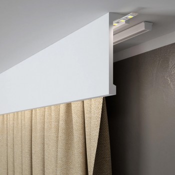 Auf Lager - Versand in 5-8 TagenDie Vorhangleiste QL036 wurde entwickelt, um Vorhangschienen zu verbergen, und besteht aus PolyForce-Material, das eine verbesserte Beständigkeit gegen Feuchtigkeit, UV-Strahlung, Kratzer und mechanische Deformationen bietet. Das Profil verfügt über eine glatte Oberfläche, die Trockenbau imitieren, sowie eine breite Klebefläche für eine sichere Befestigung an der Decke. Die integrierte LightGuard®-Technologie ermöglicht die Installation von LED-Streifen und sorgt für eine gleichmäßige Lichtstreuung ohne Lücken. Sie kann einfach zugeschnitten werden, um die Länge an Ihre Fensterlaibung anzupassen. Die Wartung ist dank einer schützenden Beschichtung, die eine Ansammlung von Staub und Schmutz verhindert, unkompliziert.