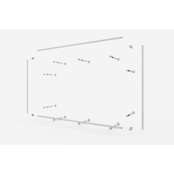 The set includes short sections of aluminium tubes acting as a distance, mounted with a single-socket t-connector to the frame and a fitting with a round foot to the wall.