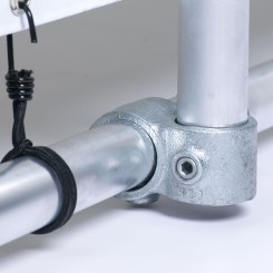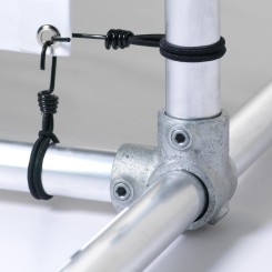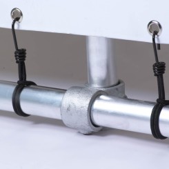 For walls exceeding the dimensions 200x200 cm, additional vertically fixed reinforcing pipes are used. The reinforcement tube is fixed using crossover joint fittings so that the reinforcement is placed under the advertising banner. In the case of mounting double-sided banners, it should be remembered that the reinforcing pipe will obscure the banner print on one side (the larger the wall, the greater the number of reinforcements used in the structure)