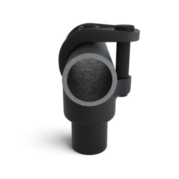 In stock - shipping in 2–9 business daysClamp-On Tee. Used for adding to and modifying an existing structure. Another big plus of the black coating is, that the color gets into the material really deeply, which prevents the connectors from corroding too quickly. The paintwork is not resistant to UV radiation and is therefore not suitable for outdoor use. The tubefittings are equipped with black colored stainless steel adjusting screws with cutting edge.
