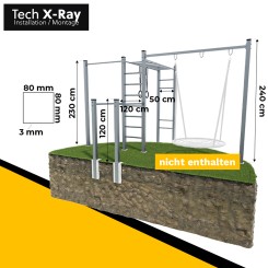 Steet Workout set made of high quality steel. Large set thanks to which your garden will turn into an open gym. Use all the available modules! You can climb the ladder, do dips, crunches, push-ups, exercise your shoulder and back muscles. Pull yourself up on a bar in a narrow or wide grip. Take advantage of barbell racks - put a bench and exercise with a barbell. You can also limit your exercises to calisthenics only and exercise with your own body weight. Street workout is a very fashionable sport. With the Steel Calisthenics Set, exercising outdoors will be a pleasure.