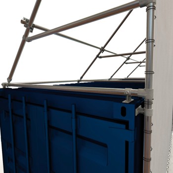 Special brackets attached to the lifting points of the container allow the frame to be installed stably without drilling or damaging the structure.