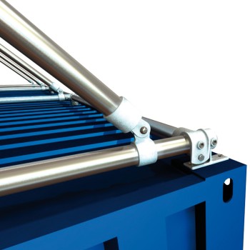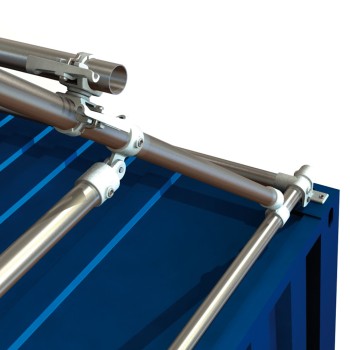 The mounting brackets allow stable attachment without damaging the container. Only a hexagonal spanner is required for assembly.