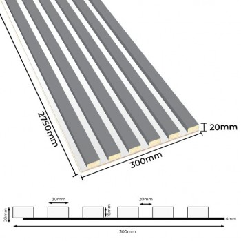Laths on HDF board 30x275 cm Grey/White (Klemp) - MDF slats on panel
