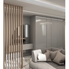In addition, the laths optically increase the size of the room, which directly translates into a better sense of well-being.