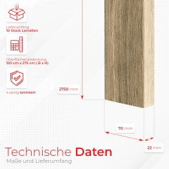 Freestanding MDF Slats 22x70 - Natural oak - 10 pieces