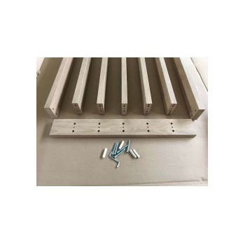 The ready-made kit does not require processing. The kit includes trimmed and drilled lamellas, peg connectors, confirmat screws. The kit does not include screw anchors for the ceiling and adhesive.