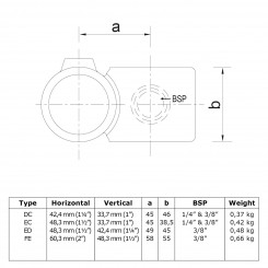 All tubefittings are marked with a size that corresponds to the dedicated tube diameter. For example, in the case of D - 42 mm tubefittings, the diameter of the tube dedicated is 42 mm. It is worth noting that each tubefitting features a certain clearance, as the tube is assembled inside the tubefitting with the use of a dedicated set screw. Therefore, a slightly smaller or larger tube should be about fine.