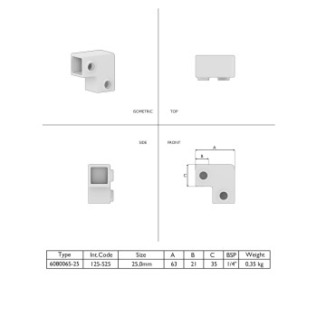 In stock - shipping in 2–9 business daysElbow piece 90° - 25 mm. Elbow fitting (90°) as end stop for the overhead rail.