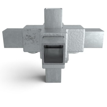 In stock - shipping in 2–9 business daysFour Socket Cross. 4-direction clamp used to fix uprights with 4 horizontal tubes that are perpendicular to each other. Upright tube passes through the clamp.