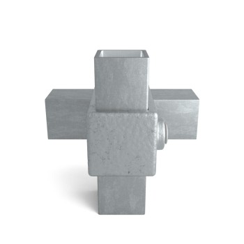 In stock - shipping in 2–9 business daysCrossover 90°. Crossover clamp (90°). Used for long tube intersections with uprights where decreasing cutting cost and increasing strength of the system with continuity of the tube is desired.