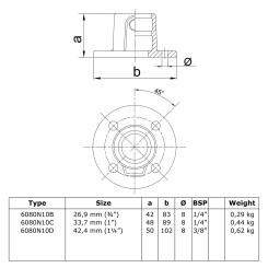 • - 42.4/48.3 and 60.3 - G 3/8" x 12.7 mm 19 BSP