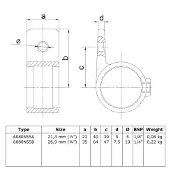 All tubefittings are marked with a size that corresponds to the dedicated tube diameter. For example, in the case of D - 42 mm tubefittings, the diameter of the tube dedicated is 42 mm. It is worth noting that each tubefitting features a certain clearance, as the tube is assembled inside the tubefitting with the use of a dedicated set screw. Therefore, a slightly smaller or larger tube should be about fine.