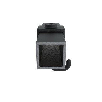 Twisted hook for square tubes, 40 mm. Helps in suspending components. Available in silver and black.