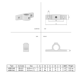 En stock - envío en 2–9 días laborablesAccesorio de tubos con orejeta doble, tipo 56. Similar al tipo 55. Conector para unir tubos con dos orejetas; también se usa para bloquear puertas.