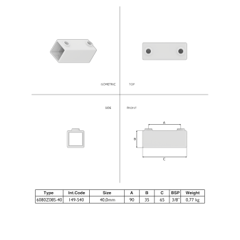 En nuestra oferta encontrará conectores cuadrados con diámetros de 25 mm y 40 mm.