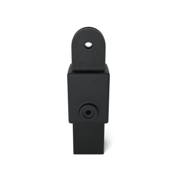 Conector hembra para tubos cuadrados, disponible en 25 mm y 40 mm. Permite uniones en ángulo recto. Disponible en color plata y negro.