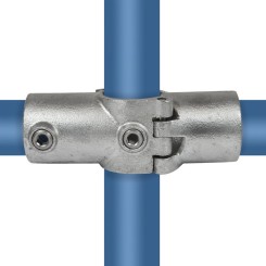 En stock - envío en 2–9 días laborablesCruz de dos zócalos adicional. Abrazadera de conexión de 90º que se puede abrir entre el riel central y los pilares de la barandilla.