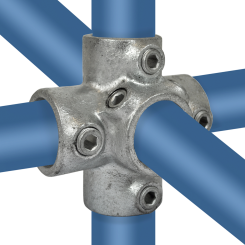 En stock - envío en 2–9 días laborablesCruz de cuatro zócalos. Abrazadera de cuatro direcciones utilizada para fijar montantes con cuatro tubos horizontales que son perpendiculares entre sí. El tubo vertical pasa a través de la abrazadera.