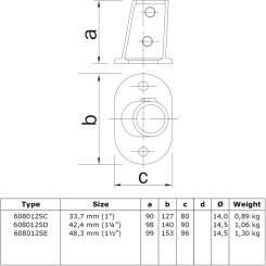 Base de barandilla en pendiente - variable Typ 12SE, 48,3 mm, Galvanizado (Klemp) - Abrazaderas de tubo redondas