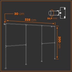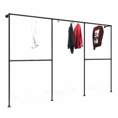 Modelo Düsseldorf: Una estantería de tres partes de 200 cm de alto y 225 cm de ancho. La combinación estable es ideal para salas de exposición, sastrerías y boutiques