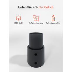 1 x Tubo de acero con un diámetro de 26,9 mm y una pared de 2,5 mm, pintado de color negro con pintura en polvo 2 x brida de tubo 2 x elementos de fijación para suelo/techo.
