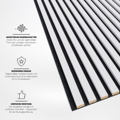 El revestimiento de la pared está hecho de MDF Premium resistente que imita la madera, lo que garantiza un uso a largo plazo. El material es ligero y elegante y ofrece grandes propiedades acústicas y térmicas.
