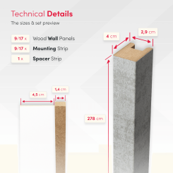 La instalación de nuestros paneles de revestimiento de madera es rápida y no requiere habilidades especiales. Puede colocarlos en la pared, por ejemplo, utilizando un tablero espacial incluido en el conjunto.