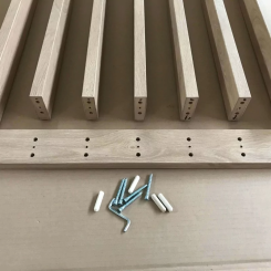 El kit listo no requiere ningún procesamiento. Recibirá lamas precortadas y pretaladradas, tacos y tornillos de conexión. El kit no incluye los tacos de montaje al techo ni el pegamento.