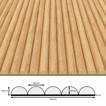 El preciso acabado de los paneles ondulados se aprecia en cada detalle. Todo empieza con el corte y fresado perfectos de las cornisas, que crean una superficie uniforme y elegante. Además, el corte semicircular de las cornisas hace que la composición sea tridimensional, dando profundidad a toda la habitación. Aquí cada detalle cuenta, porque son los detalles los que construyen el efecto final de la disposición, dando a la habitación un carácter armonioso y lujoso. Los colores cuidadosamente seleccionados y un acabado de alta calidad añaden estilo y clase al interior. Los paneles de pared ondulados crean un espacio único en el que la elegancia se une al diseño moderno.