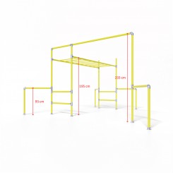 La barra de 3 m x 900 mm, con nueve peldaños, también es regulable en altura, de 1,2 a 2,3 m, y hasta 3 metros con extensiones.