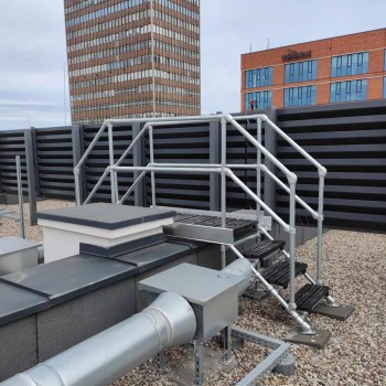 Gracias a su construcción modular y a la amplia gama de plataformas y escaleras, Kee Step® resulta eficaz tanto en cubiertas industriales como en edificios comerciales. Los peldaños y plataformas antideslizantes, fabricados con materiales resistentes a la intemperie, garantizan un tránsito seguro incluso durante la lluvia o el hielo, aumentando significativamente la seguridad de los usuarios.