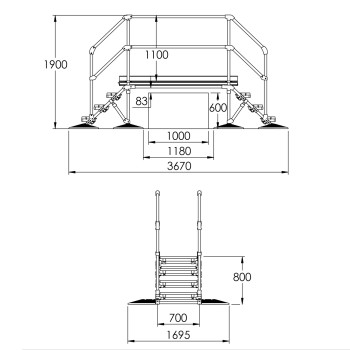 El sistema está disponible en múltiples variantes: desde pasos bajos tipo “mini” sin barandillas hasta estructuras altas con protección lateral completa. También ofrecemos soluciones a medida, lo que permite una adaptación perfecta a las condiciones específicas de cada cubierta u objeto.