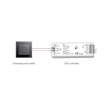 Le récepteur V1 est une excellente option pour ceux qui recherchent un contrôle traditionnel de l'éclairage LED installé entre les lamelles. Les deux types de télécommandes et récepteurs sont compatibles entre eux. Le choix du récepteur dépend de la charge maximale. Avec une alimentation de 12V, la puissance est de 96W, tandis qu'avec 24V elle est de 188W. Le récepteur doit être connecté entre l'alimentation et les lampes LED.