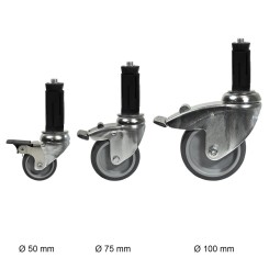 Ces expanseurs conviennent aux tubes d'un diamètre de 26,9 mm. À l'aide d'un extenseur, une roue pivotante peut être fixée à un tube. En conséquence, des constructions telles que, entre autres, des cadres mobiles et des meubles mobiles peuvent être réalisées.