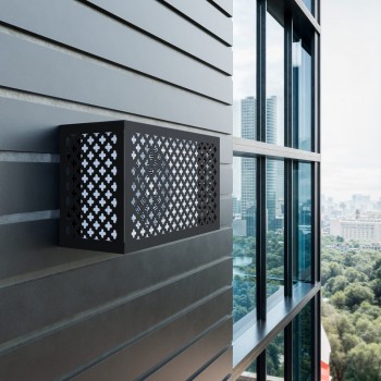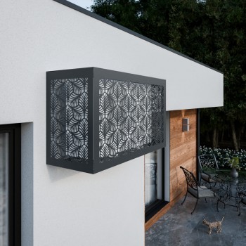 Climatiseur moderne et grille de pompe à chaleur en composite d’aluminium durable (Aludibond). La combinaison parfaite d’esthétique, de fonctionnalité et de protection. La conception ajourée fournit une excellente circulation d'air, éliminant le risque de surchauffe, ainsi que dissimulant efficacement l’unité, le câblage et les supports. La résistance aux intempéries, aux rayons UV et à la corrosion garantit une longue durée de vie. L’installation facile permet une installation sur un mur ou un positionnement sur des pieds en caoutchouc. Le produit est disponible dans de nombreux modèles et couleurs, avec la possibilité de réglage de la taille individuelle. Il servira de masque pour un climatiseur sur un balcon, la façade d’une maison, d’un bureau ou d'un hôtel.